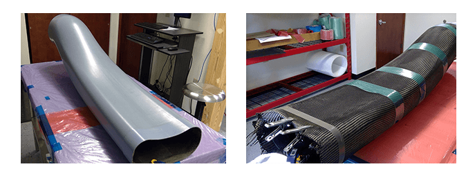 PROBLEM – Fabricate a 52” long by 12” diameter inlet duct for a tactical UAV at a lower cost than hand applied carbon pre-preg and an autoclave cure while maintaining equal performance and quality.