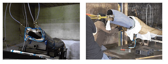 The assembly was placed on a stand in an autoclave for a 9 hour cure cycle. After the cure was complete and consumables were removed, the composite inlet duct and Smart Tool were placed in an oven and once the temperature exceeded 325°F, the then elastic Smart Tool was extracted from the cured composite inlet duct and reformed to begin the next cycle.